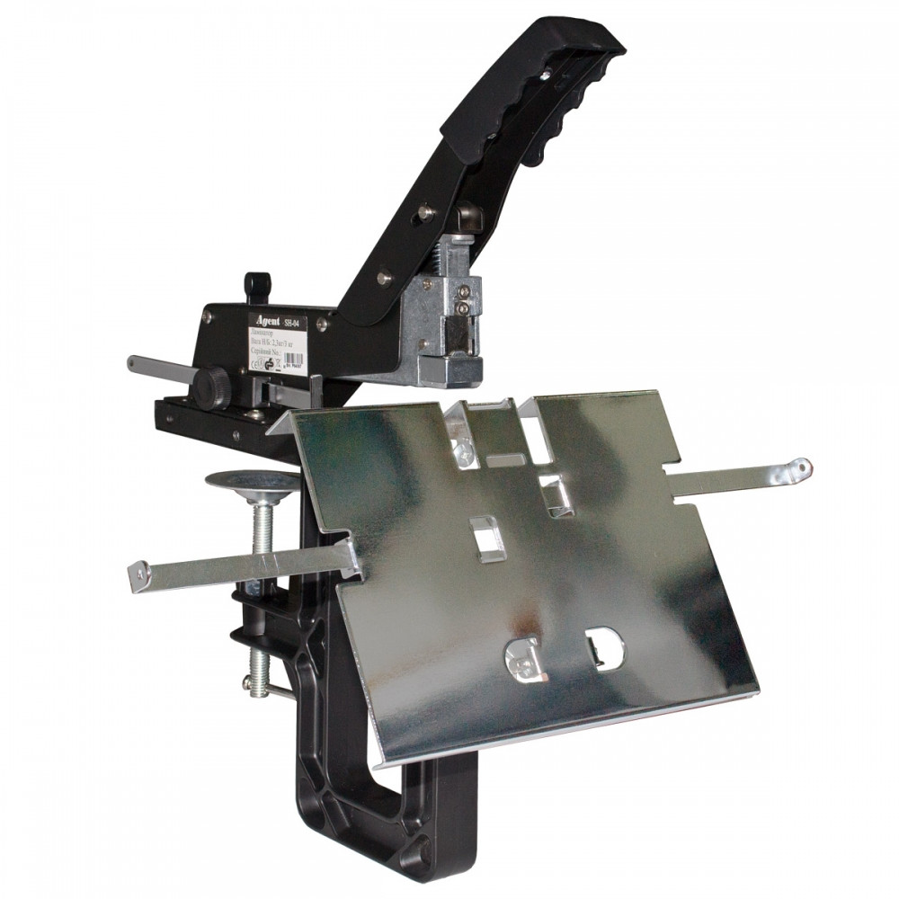- може степлювати, як звичайний степлер (у разі горизонтального положення столика) — втачку.